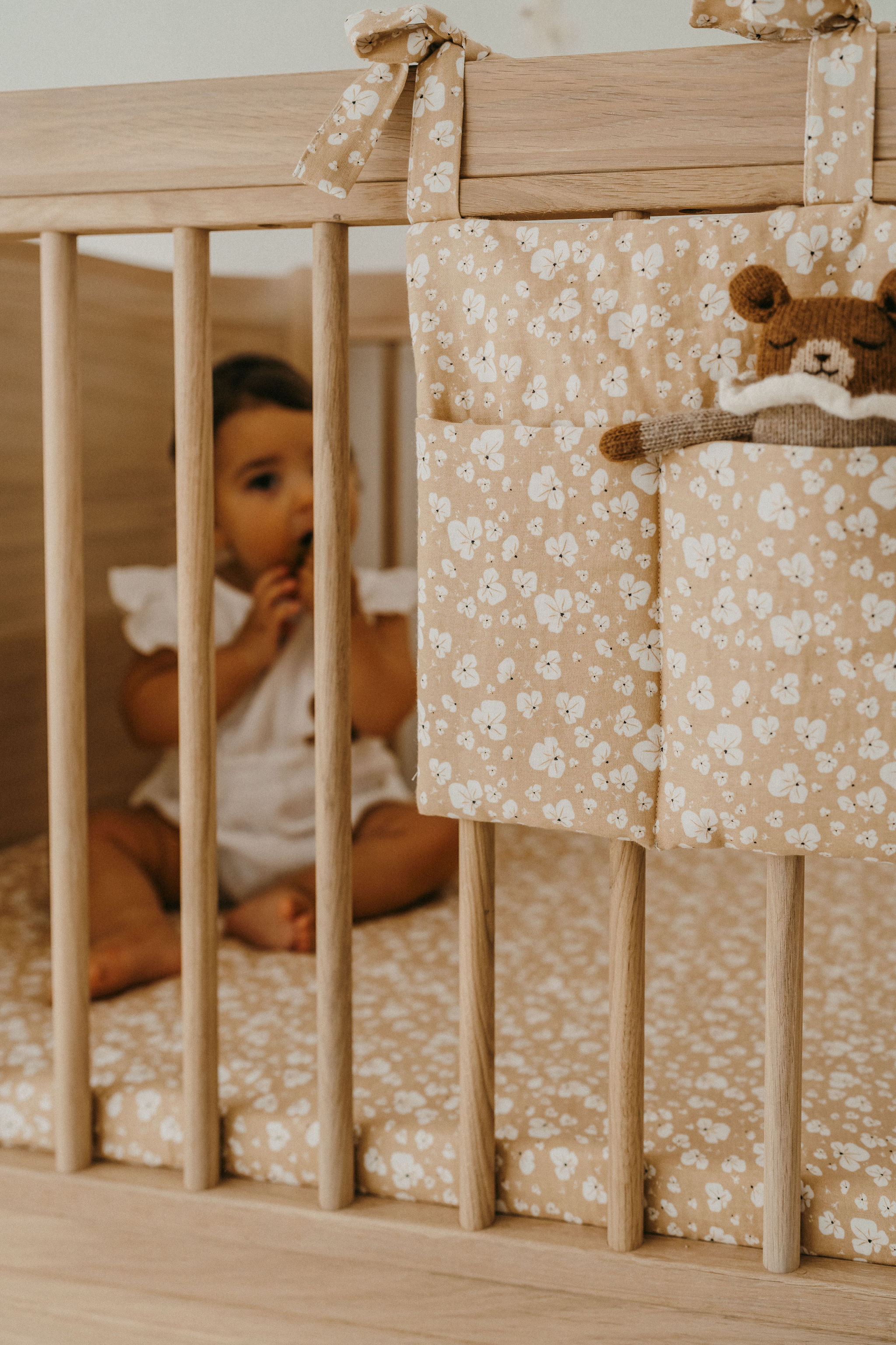 Our baby bed pouch, in double cotton gauze, is the practical and elegant accessory for organizing your little one's essentials. Made from double cotton gauze, it is soft to the touch and fits perfectly into the decoration of the room. Its spacious pockets allow you to store cuddly toys, pacifiers and other essentials, always within reach for baby's bedtime. With its delicate and timeless patterns, this clutch combines functionality and aesthetics, simplifying the evening routine.