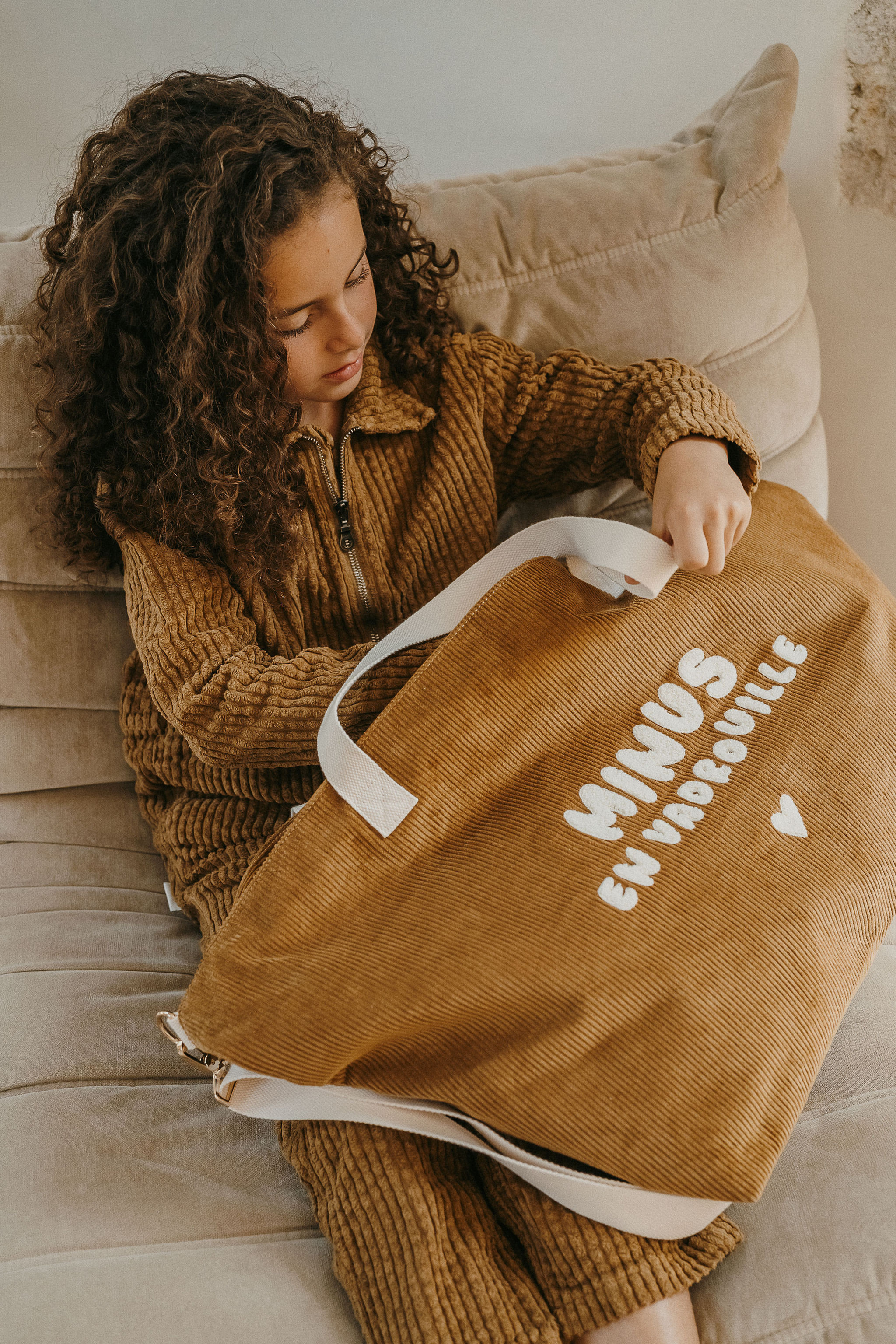 Because one bag is never big enough, whether it's for a family outing, a weekend getaway, or to carry your big one's sports gear, our XL corduroy tote bag is designed to accompany you every day. Its generous size holds everything you need, its zipper keeps your belongings secure, and its adjustable shoulder strap makes it easy to carry. The delicate embroidery adds a modern and unique touch to this essential companion.