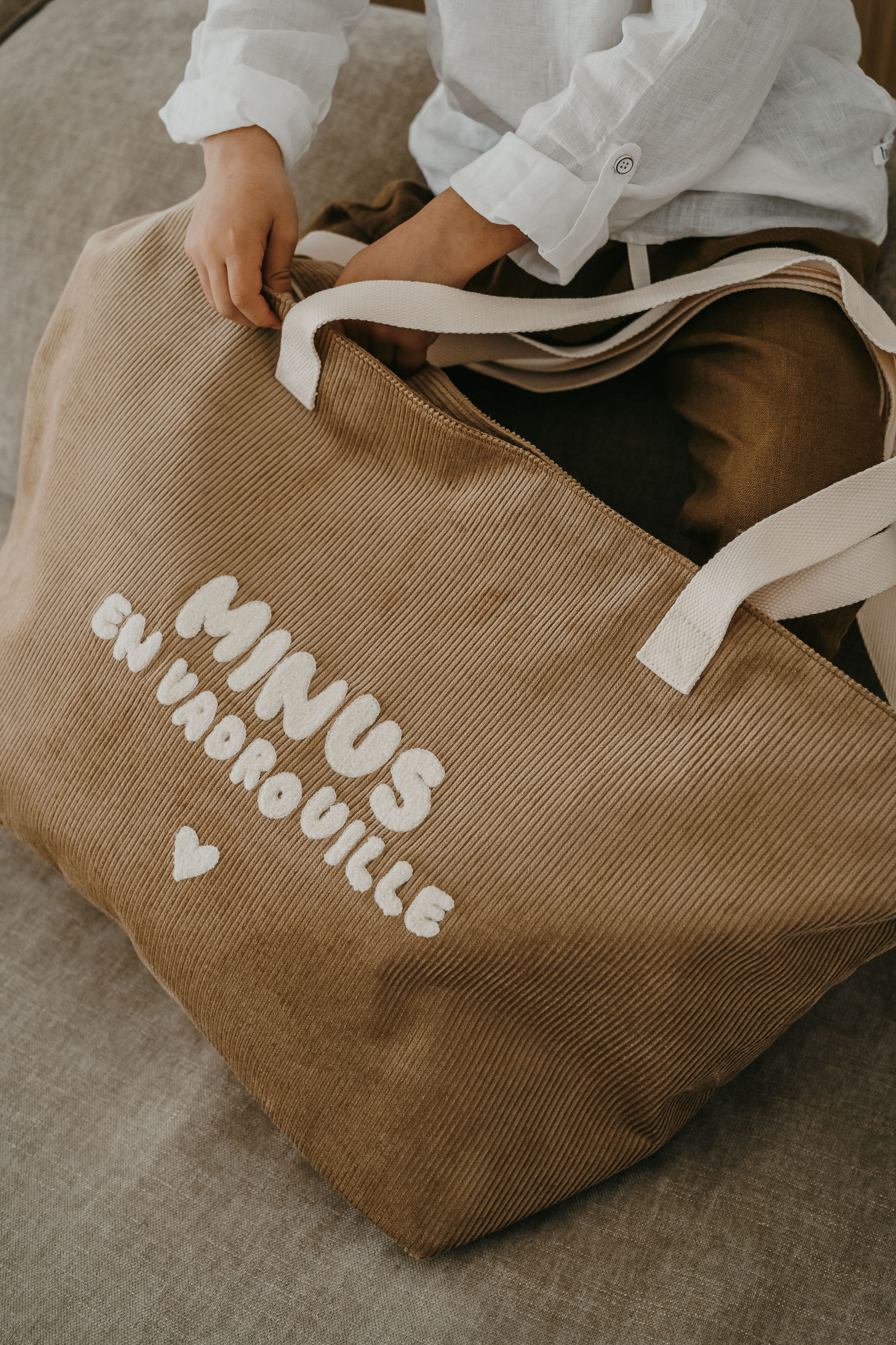 Parce qu’un sac n’est jamais assez grand, que ce soit pour une sortie en famille, une escapade le temps d’un week end ou pour transporter les affaires de sport du grand, notre sac cabas XL en velours côtelé est pensé pour vous accompagner au quotidien. Son format généreux accueille tout ce dont vous avez besoin, sa fermeture éclair garde vos effets en sécurité et sa bandoulière réglable facilite le transport. La broderie délicate ajoute une touche moderne et unique à ce compagnon indispensable.